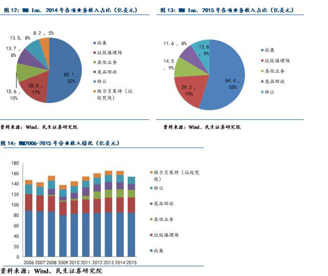 據(jù)公司2015年年報(bào)披露,于法國(guó)當(dāng)?shù)兀就ㄟ^(guò)垃圾收集、運(yùn)輸以及處理所簽署的訂單合同預(yù)計(jì)累計(jì)收益達(dá)到了1.29億美元,在歐洲其他國(guó)家簽訂相關(guān)合同預(yù)計(jì)累計(jì)收益可達(dá)9.83億美元。